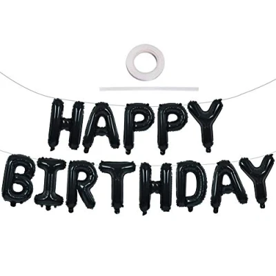 TONIFUL Black Happy Birthday Balloons Banner, 16 Inch Mylar Foil Letters Sign Bunting Reusable for Girls Boys Kids & Adults Decorations Party Supplies