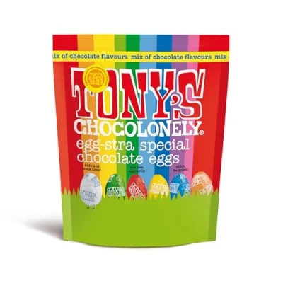 Tony's Chocolonely Easter Eggs Pouch Mixed Chocolate 8 Flavours 1 x 230 Gram Gift Fairtrade Mini Family Chocolates