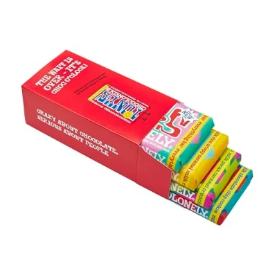 This gift pack includes 4 x 180 g Milk Chocolate Bars: Everything Bar 180g, Milk Chocolate Rice Crispy Caramel 180g, Milk Chocolate Chip Cookie 180g Milk Chocolate Pecan Crunch 180g Find your favourite from this Milk Chocolate Variety pack; Everything Bar: Caramel, almonds, pretzel, nougat and sea salt; Rice Crispy Caramel: Puffed rice, caramel and milk chocolate; Chocolate Chip Cookie: Milk chocolate, choc chip bits, cookie crumbs; Pecan Caramel Crunch: Caramel and pecans Our vision is 100percent exploitation-free chocolate; Not just our chocolate, but all chocolate worldwide; As more people choose exploitation-free chocolate and share our story, 100percent exploitation-free chocolate will become the norm; Ultimately you decide, do you participate Noticed that our bars aren't equally divided; That's because the chocolate industry is unequally divided; The profits aren't shared equally, so our bars can't be either This gift box contains 4 x 180 g bars of Tony's Chocolonely