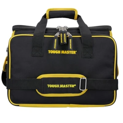41 POCKETS - A massive 41 pockets and compartments to organise your tools into a near manner. Making your work rate more productive and efficient. WIDE COMPARTMENT - Either use the main central compartment as your deep loading pocket or make use of the moveable divider that can separate the central compartment. PADDED HANDLE - A comfortable handle ensures there is no discomfort when carrying heavier loads. The heavy-duty stitch can carry a load of up to 15kg. DURABLE REINFORCEMENT - Material is made from 600D polyester which is held together with rivets and cross stitching for a stronghold. This reduces distortion of material due to heavy tools. RUBBER FEET - The protected base reduces unwanted wear and tear and also increased stability when on loose flooring. LOAD CAPACITY - When at full capacity this bag can carry at maximum 15kg of weight. VERSATILE - Easily fill up this bag with all your tool essentials commonly used for garage repairs, garden work and maintenance tasks., Weight: 4.8281235378 Pounds, Manufacturer: Tough Master