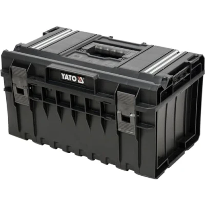 Robust tool box measuring 450 x 260 x 240 mm. The net weight is only 2.5 kg. The tool box provides convenient storage The stacking box can be combined with different elements in the range and safely transported to the place of use with 2-3 boxes. Small divisible compartments for inserting small items, such as screws, dowels and nuts can be found with easy access in the transparent The tool box has a removable carry insert for quick use on site. An integrated seal Durable plastic, robust aluminium handle, removable carrying insert, reinforced polyamide latches, side fastening elements for steel