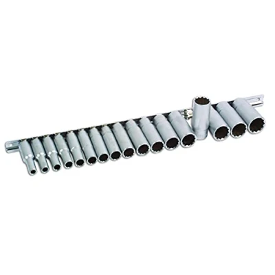 Socket sizes: 6, 7, 8, 9, 10, 11, 12, 13, 14, 15, 16, 17, 18, 19, 20, 21, 22mm. Bi-Hex (12pt) x 63mm long. Supplied on a socket rail. Manufactured from satin finish chrome vanadium. 3/8"D standard set of sockets available - please see Laser Part No. 3501.