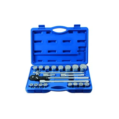 16 x 3/4"D sockets: 19, 21, 22, 23, 24, 26, 27, 29, 30, 32, 35, 36, 38, 41, 46, 50mm Accessories: 500mm professional 24 teeth ratchet handle, 3 x extension bars (100mm, 200mm and 400mm long), 450mm sliding T-bar Manufactured from satin finish chrome vanadium