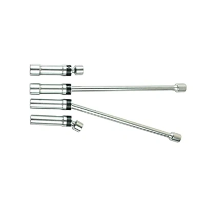 Sizes: 2 x 3/8"D x 100mm long: 14, 16mm; 2 x 3/8"D x 300mm long: 14, 16mm. Max angular displacement: 50°, providing greater access to confined spaces. Fitted with rubber inserts to protect and hold the spark plug. Manufactured from chrome vanadium with matt finish. Presented in an EVA foam tray convenient for user storage and limiting packaging waste.