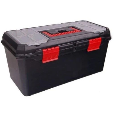 General description This heavy-duty 19-inch plastic tool box is designed for professional use, made from tough and durable plastic to securely store a wide range of tools. It is ideal for easy transportation around the home or work site. Technical specifications Dimensions: 19 inches Material: Durable plastic Compatibility and accessories Includes 1 removable tote tray for storing small tools Features 2 storage compartments on the lid for smaller tools or fixings Installation No installation required Usage Perfect for transporting and storing multiple tools Can be locked with a small padlock for added security