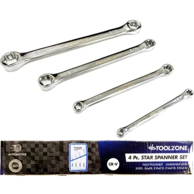 Toolzone 4 Piece Star D/End Ring Spanners