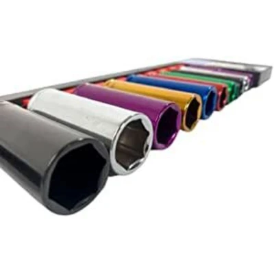 Toolzone Colour 10 Piece 3/8'' Drive Deep CRV Sockets