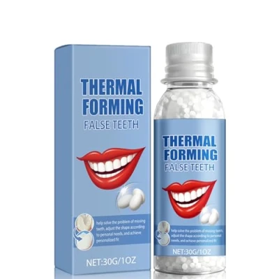 【Temporary Savior】Choose Temporary Tooth Repair kit when you lose teeth or have gaps in your teeth until your dentist has completely solved your problem. Relieve your dental anxiety and let you show a confident smile. 【Diverse Uses】Tooth repair kit is used for temporary restoration of crowns, bridges, veneers and inlays to meet your daily needs. And it is a great choice to making dentures for Halloween. 【Easy to use】All you need is a cup of hot water. Take out a few tooth repair beads and put them in hot water until they melt. Then take it out and quickly pinch it into the shape you want. Be sure to leave a bit of excess material to fit snugly behind the two adjacent teeth. After fixing the denture, just wait for it to cool down and then you can use them normally. 【Environmentally Friendly Materials】Our dental restoration beads are made of polyurethane material, which has excellent toughness and durability, and closely fits the contour of the teeth. 【Tips】After getting temporary dentures, it is not recommended to eat hot or hard food, as well as sticky foods like chewing gum. If you need to remove the false tooth, hold 45-50°C water in your mouth. Keep it for a while, then spit it out. Gently wiggle the tooth, and repeat the process a few times until it comes out.