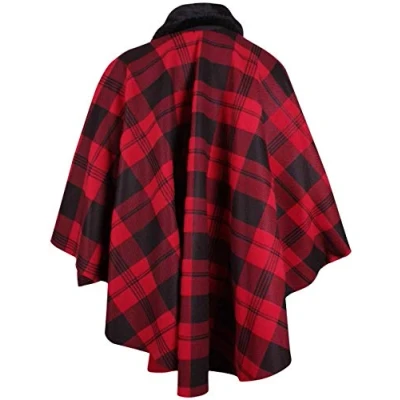 Top Fashion18 Ladies Plus Size Batwing Fleece Faux Fur Collar Tie Tartan Cape One Poncho Coat UK 16 28
