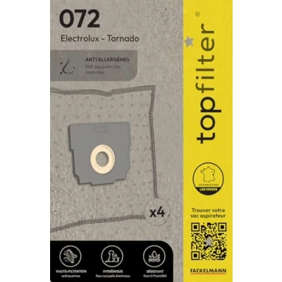 Box of super multi-layer coating on fleece (100% Synthetic) compatible with Electrolux, Progess, Tornado and more Pack: 4 Bags of 30 x 26 x 0.1 cm, Weight 0.03Kg one PVC, delivered in a case with a quality TopFilter Use: The Correct TopFilter vacuum cleaner bag of your vacuum cleaner, please see full operating instructions of the manufacturer of your model Each bag is fitted with a cartonnette with sealing rubber seal for high capacity and a flawless. Product manufactured and packaged in the UK, Weight: 0.3086471668 pounds, Manufacturer: Topfilter