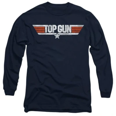 Top Gun Distressed Logo Mens Long Sleeve T Shirt, Navy, X Large