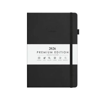 ⭐ PREMIUM 2026 PLANNER FOR MAX PRODUCTIVITY Stay organised all year with this elegant A5 2026 planner featuring a durable hard cover, embossed design, and a professional matte finish. Designed for work, school, office, and personal planning. ⭐ EASY MONTHLY NAVIGATION WITH COLOUR TABS Quickly jump between months using the built-in colour-coded index tabs. Each month is labelled (Jan–Dec) for fast access—perfect for busy professionals, students, and planners on the go. ⭐ DAILY & WEEKLY LAYOUTS WITH HOURLY SCHEDULE Each page includes clear hourly time slots, lined writing space, weekday labels, and week numbers, helping you manage appointments, tasks, and deadlines efficiently. ⭐ FULL FEATURED: ELASTIC BAND + PEN LOOP + RIBBON BOOKMARK Includes a strong elastic closure, convenient pen loop, and a silky ribbon bookmark to save your place. Pages are thick, smooth, and designed to prevent ink bleed. ⭐ HIGH-QUALITY BUILD FOR DAILY USE Compact and portable at 8.46 x 5.71 inches (21.5 x 14.5 cm) with rounded corners for comfort. Ideal for travel, office desks, bags, and everyday carry. ⭐ GOAL SETTING & PRODUCTIVITY SECTIONS Includes pages for goals, priorities, reminders, notes, and monthly summaries, helping you stay motivated, focused, and productive throughout 2026.