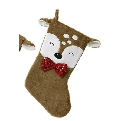 Top Sale Plush Christmas Stocking Red and white Velvet Effect (Baige Bow Tie)