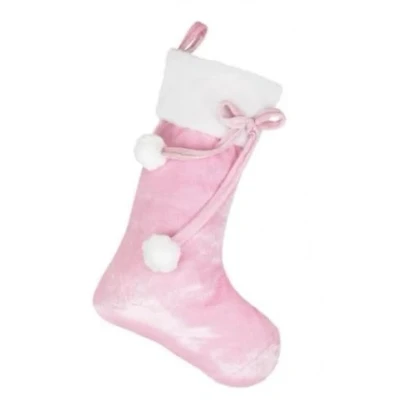 Top Sale Plush Christmas Stocking Velvet Effect Pink 40cm X 25cm with white Pom