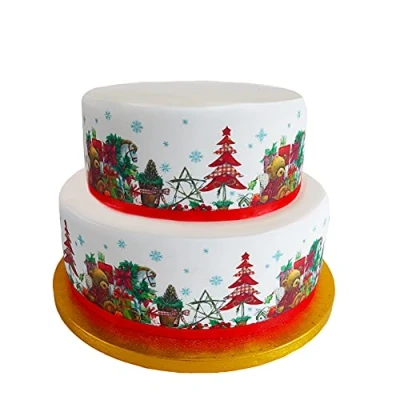 Christmas Teddy Bear & Presents Edible Decor Icing Sheet Cake Border Ribbon - Great for parties You will receive the border images printed , with edible inks, onto 1 x sheet of A4 Decor Icing - Each strip is 28cm long x 6-7cm depth The icing sheet just needs to be cut into 2 strips and then placed around your cake to form a border. Lovely Christmas Teddy Bear & Presents image printed with edible inks and fully edible - cut into strips, peel off plastic backing and then stick onto either white fondant or buttercream Fully Edible - Decor Icing Ingredients -Thickener(E1422,E1412), Maltodextrin, Humecetant E422, Sugar, Water, Stabilizers(E414,E460i), Dextrose, Emulsifiers (E435, E491,E471), Flavours, Acidity Regulator E330, Preservative E202, Sucralose