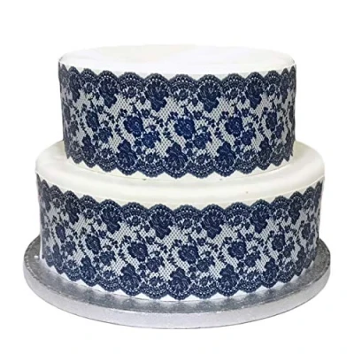 Top That Edible Decor Sheet Navy Blue Lace Effect Border Ribbon Perfect for Larger cakes Easy to Use