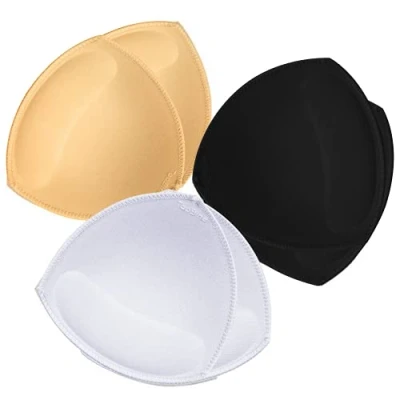 ➤Cups Bra Inserts Size: A/B :5*5 Inch ,C/D :5.5*5.5Inch,Best for A/B/C/D sports bra and bikini tops.Support free cutting ➤Material: Comfortable bra padding.96% Nylon 4% Spandex breathable performance is very good.High quality, Chest pad side is sewn and no glued ➤Easy to Use:Below the chest pad thicker than the top 0.5in, more conducive to the accumulation of the chest,Lightweight bra inserts stay in place.Push up bra padding inserts don't slip at all, move around, or stick out of your bras even when exercising pretty hard. ➤Pretty breathable Comfortable wearing : The Sports Cups are thin, they are pretty breathable--even when sweating a lot.they don't interfere with the moisture-wicking properties of your sports bras ➤Wide Application : Smart Cups Bra Insert pad perfect for swimsuits, bra pockets, evening gowns, wedding dresses, sweaters & casual wear,and just about any top that could use a triangular shaped insert.