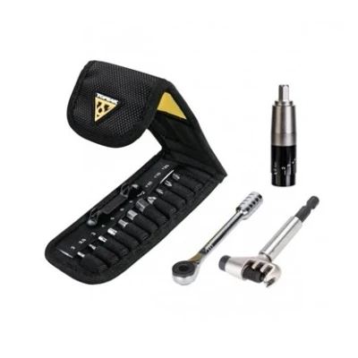 Features a fine tooth ratchet mechanism with reverse lever and thumb wheel with adjustable torque TorqBit for ease and accuracy in tight spots Includes magnetic bit holder, hardened steel tools in 2, 2.5, 3, 4, 5, 6 and 8mm hex, T10, T15, T25 Torx, #2 Phillips bits and CroMo steel chain tool The protective case keeps things organized and secure, and even has a pocket to carry glueless patches Also includes Screwdriver, Secondary chain link fence, Chain pin breaker, Leverage added, Patch pocket, Weight: 0.6 pounds, Manufacturer: Topeak