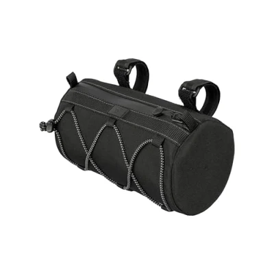 AmazonStylish handlebar duffle with a full-length zipper for easy access. Perfect for short trips to carry essentials like tools, phone, keys, nutrition etc.. Features a reflective elastic cord and a dedicated slot for mounting a front safety light One main compartment with a capcity of 1.5 Litres Fits handlebars up to Ø56 mm and head tubes from Ø35 mm to Ø100 mm Size: 19 x 10 x 10 cm. Weight: 128g MAX LOAD 1.5kg