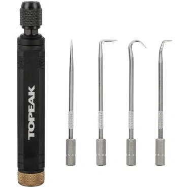 • Integrated four interchangeable pick tools• Compact storage design with picks neatly housed in the handle• Quick-release mechanism for easy tool access and swappingTools: Hook and pick setMaterial: Aluminium / Hardened steelSize: 2.3 x 13.5 cmWeight: 116 g