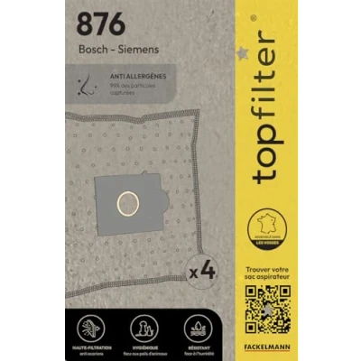 Box of super multi-layer coating on fleece (100% Synthetic) compatible with Bosch, Privileg, Siemens and More Pack: 4 Bags of 30 x 26 x 0.1 cm, Weight 0.03Kg one PVC, delivered in a case with a quality TopFilter Use: The Correct TopFilter vacuum cleaner bag of your vacuum cleaner, please see full operating instructions of the manufacturer of your model Each bag is fitted with a cartonnette with sealing rubber seal for high capacity and a flawless. Product manufactured and packaged in the UK, Weight: 0.3086471668 pounds, Manufacturer: Topfilter