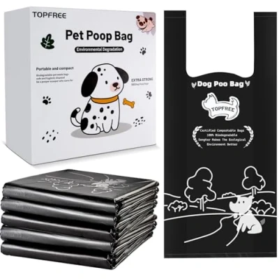 【Health and environmental protection】Dog poop bags are break down and are kind to the environment. Our premium quality doggy poop bags will keep your surroundings health and clear. 【Large Size, Thick & Strong】 500 Dog Poo Bags, Large, thick, vest type waste bags with easy to tie handles Up to a 8 months supply if 2 bags usage per day. 【Easy to use】These dog waste bags are Each bag is independent, It's easy to pull each a bag out of box one by one. Our bags have handles so you can tie them easily. 【Keep Your Hands Safe】Our poo bags are 100% leak-proof and extra thick,never worry about your hands when you pick the poo up. 【Super Value Package】Topfree pets bags dog waste bags, black , total 500 bags. Our dog poop bags with handles are ideal for all dogs regardless of the size, age, or breed.