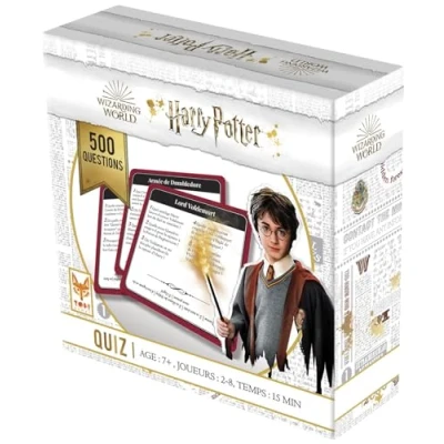 HARRY POTTER QUIZ FOR ALL SAGA FANS: Dive into the magical universe with this Harry Potter quiz consisting of 500 questions from the 8 movies, take turns answering and be the fastest to reach 7 correct answers to win the victory HARRY POTTER ROLE ROLE CARD GAME: Choose a question number from 5 themes, try to answer it correctly and earn a point, every right answer brings you closer to the goal in this suspenseful harry potter card game QUICK AND FUN HARRY POTTER FAMILY GAME: Designed for dynamic 15-minute games, this Harry Potter family game is played for 2 to 8 players and allows everyone to test their magical knowledge without the need for the "Obliviate" spell HARRY POTTER BOARD GAME 7 YEARS AND UP: Adapted from 7 years, this Harry Potter board game stimulates memory and reflection by answering questions about the world of films, a fun learning moment to share between young and old Compact format and rich content: With its 500 quiz cards, this Harry Potter 7 year old children's game offers high replayability, ideal for fans of the saga who want to challenge themselves with friends or family around a cult universe French game publishing brand: Topi Games is a French publishing house of family, educational and connected games, created by enthusiasts to modernize the tradition of board games and strengthen family bonds, Manufacturer: Topi Games