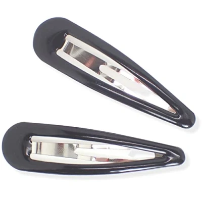 Topkids Accessories 2pc 9cm / 3.5" Large Hair Snap Clips Big Women Girls Kids Sectioning Slide Grip Fringe Styling Fine Thick Bendies Sleepies Epoxy (Black)