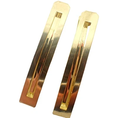 Topkids Accessories 2pcs Open style Hair Clips, Barrettes, Slides, Grips, Hairdressing for Women, Metal barrette (Straight, Gold)