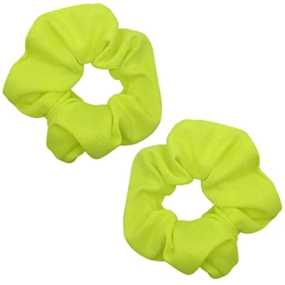 Topkids Accessories 2pcs Regular Bright Neon Scrunchies for 80’s Costume or Raves, Club Scrunchie, Girls & Women, Girl’s Hair (Neon Yellow)