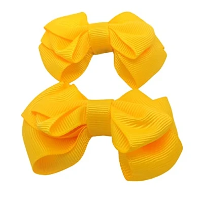 Topkids Accessories 2x Ribbon Hair Bows Clip for Girls Clips Women Baby Crocodile (7cm Double Bow, Yellow)