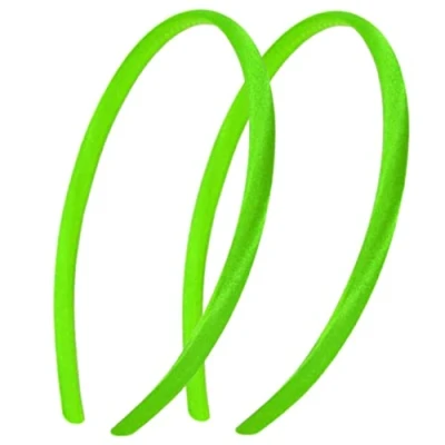 Topkids Accessories 2x Thin Satin Hair Bands Headbands Alice Girls Women Kids Hairband Head Band Adult Party Bag Fillers Bridesmaid Festival 1cm 0.4" (Neon Green)