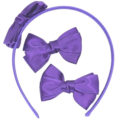 Topkids Accessories 3pc Hair for Girls School Gift Set: Bow Band Headbands & Clip Bows, Birthday Set Clips (Purple)