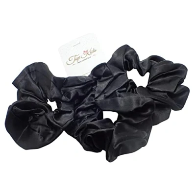 Topkids Accessories 3pc Satin Hair Scrunchies for Women & Girls, Women, Bobbles, Ties, Elastics, Ponytail Holders, Styling (Black)