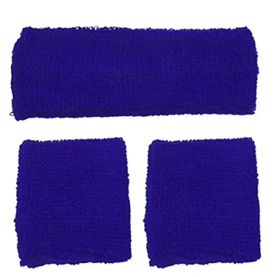 Size: Sweatband Approx. 7x7cm/3x3”, Headband Approx. 15x15cm/6x6” Material: Stretchy Towelling Fabric Colour: Royal Blue Colourful groovy sweatbands & headband set for gym or 80’s costume Top Quality Products by Topkids Accessories