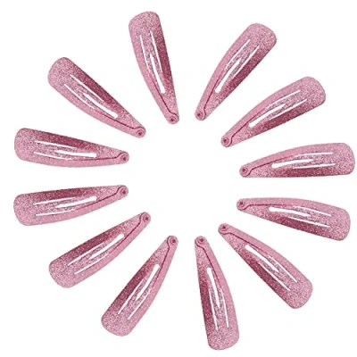 Topkids Accessories Glitter Hair Snap Clips Glittery Girls Children Women Kids Clip Sparkly Slides Fringe Party Sectioning Bendies Sleepies 5cm / 2" (12 Pink Glitter)