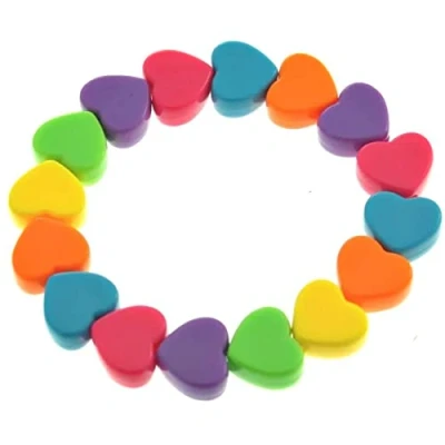 Heart Bracelet for Kids. Various colours available. Valentines Day style Suitable for: Beaded bracelets, Kids bracelet, Jewellery for Girls, Friendship bracelet & more. Plastic, colourful hearts on a kids sized bracelet. Measures Approx. 16cm circumference Top Quality Products by Topkids Accessories