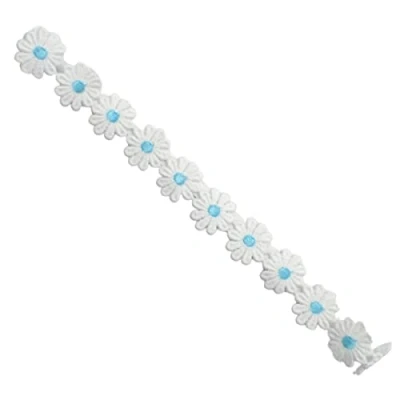 Topkids Accessories Knitted Hippy Elastic Headbands for Women & Girls, 70s Party Flower Power Stretchy Headband, Colourful Crocheted Daisy Crown Headband Ladies (White/Aqua)