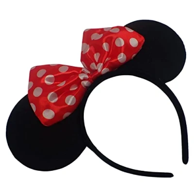 Topkids Accessories Mouse Ears Head band, Black Ears, Rat costume, Mice With Spotty Bow, Adult on Alice band for Adults and Kids (Black Ear Red Bow)
