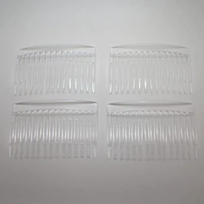 Set of 4 clear hair comb slides, measuring 7cm/ 2.7" approx. Other colours are available in black or tort brown. These hair comb slides are the ideal hair accessory for women, ladies and girls. Perfect for ladies who like to make new hairstyles in everyday life and give their hair a booster whether going to a party or formal occasion Suitable for thick and thin hair, these hair combs sliders fit neatly into any hair style making you stand out with the latest fashion With three colours to choose from, match your hair comb with your latest outfit. Alternatively, use our hair combs to tie your hair back away from your face Top Quality Products by Topkids Accessories