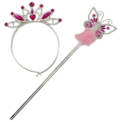 Topkids Accessories Sparkly Wand & Crown Set, Tiara for Girls Kids, Magic Dress Up Costumes, Dressing Wands, Princess Queen Fairy Headband Women Halloween (Pink Butterfly)