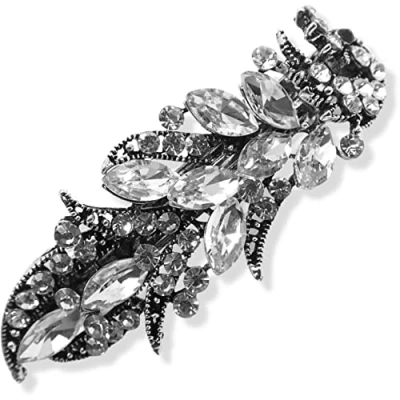 Topkids Accessories Vintage Hair Barrettes for Women, Flower Clip, Diamante Clips Bridal Accessories, Women (Crystal Leaf)