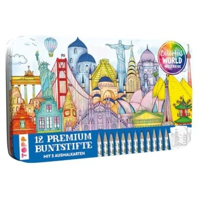 12 colouring pencils - different coordinated colours 5 colouring cards - to colour and give as a gift Beautifully designed tin - ideal as a gift