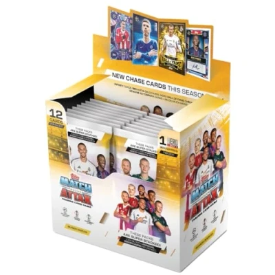 The Full Box contains 32 packets of UCC Match Attax 2025/26 and a guaranteed Hero Packet is inside every Full Box. Each packet contains 12 cards including 4 special insert cards. Match Attax 2025/26 has 524 brand new cards to collect from exciting new categories such as Leaders, Cup Champions, Showboats, Magic Memories, Stealth Strike and Counter Attax. Look out for Black Edge cards, Infinity cards, Platinum Pull cards, Hall of Fame Chrome cards, Black Gold LE's, the new Red Hot Yamal card and the Ice Cole Palmer cards to take you collection to a whole new level. Plus, will you be lucky enough to find a relic card (available inside Booster and Mega Tins only) or the Lethal Combo Auto card or other amazing autograph cards available throughout the collection? Official Licensed UEFA Product., Manufacturer: Topps