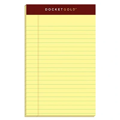 TOPS Docket Gold Writing Pads, 5" x 8", Jr. Legal Rule, Canary Paper, 50 Sheets, 12 Pack (63900)