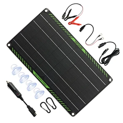 【Light, Simple, Durable】 Lightweight and easy to carry. It weighs only 0.75 pounds and measures 7.45 x 13.19 inches. Made of waterproof and durable material, the panel is waterproof all over, designed for long-term use. 【Excellent circuit protection】 Excellent safety circuit is built in the junction box, which can not only prevent the battery from overcharging and reverse charging but also protect and prompt the reverse connection of the circuit (when the red light is on). 【Plug & Play】 Heavy-duty 2.1mm x 5.5mm DC plug with an extension cord. The accessories are complete, the installation is convenient, and no professional knowledge is required. There is no need for additional maintenance of the kit, no electricity bills, as long as it faces the sun, the charger will generate electricity to trickle charge the battery. 【Applicable to all rechargeable 12v batteries】 As a solar battery charger and maintainer, it can safely maintain 12v batteries, such as wet batteries, gel batteries, SLA batteries, EFB batteries, AGM batteries and deep cycle batteries, etc., also suitable for Any car, motorcycle, truck, boat, tractor, RV, snowmobile, truck, etc. 【12-months warranty】 The solar panels you buy are of excellent quality, and come with a 12-month free warranty and lifetime technical support. You can contact us for any quality issues within 12 months (Note: Before measure the voltage, you need to activate the product by connecting to the load).