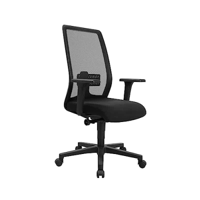 Comfortable swivel chair with elegant mesh backrest Infinitely adjustable seat height with top lift Ergonomically shaped backrest with breathable mesh covering, back with height-adjustable lumbar support Comfortable recessed seat for optimal support in the pelvic area with knee roller Synchronous mechanism, for synchronous adjustment of the seat and backrest inclination - backrest tilt and seat tilt follow the movements of the seater, adjustable to the respective body weight, lockable with safety release