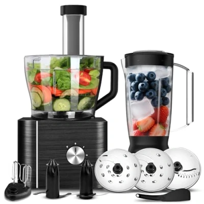 TopStrong Food Processor, Processor and Blender Multifunctional for Chopping Blending Kneading Whisking Juicing, 1100W, 3 Speeds Pulse Function, 3.2 L Bowl 1.5L Jug Blender, Black
