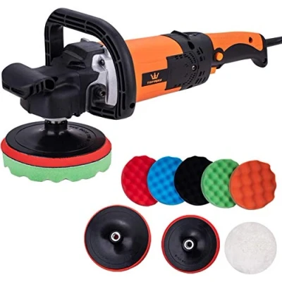 TOPWAY Car Polisher 1450W 150mm 180mm Electric Buffer Polishing Waxing Machine with 8PCs Sponge Wool Set, Variable Stable Speeds, Detailing Kit 100039