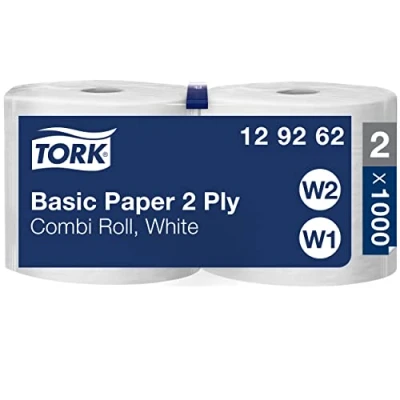 Tork 2-ply universal, basic roll for light wiping tasks / Compatible with the W1 Wipers wall/floor/standard system and W2 Wipers combi roll system dispensers Cleaning paper roll can easily be operated with one hand, enabling users to take the exact amount of paper needed The wiping tissue is cost-effective as it helps reduce the amount of material needed for surface cleaning and is easy to carry with the Tork Easy Handling E-Handle Tork wiping & cleaning roll has the FSC Recycled Credit and is EU Ecolabel certified / Approved for short contact with food Items delivered: 2 x basic paper W1 2 ply roll, white, for Tork W1 Wipers wall/floor and W2 combi roll systems / Roll width: 23.5cm, Ø 26cm, 1000 sheets, 340m per roll